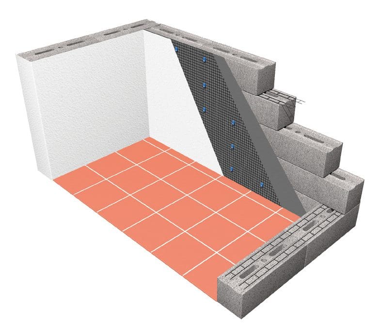 Det första skiktet av murblock ska delvis vara nergrävt i grunden och läggas ovanpå den fortfarande blöta betongen i sulformsblocken. Se fler skisser i arbetsbeskrivningen som kan laddas ner från Gör det själv-projektet.