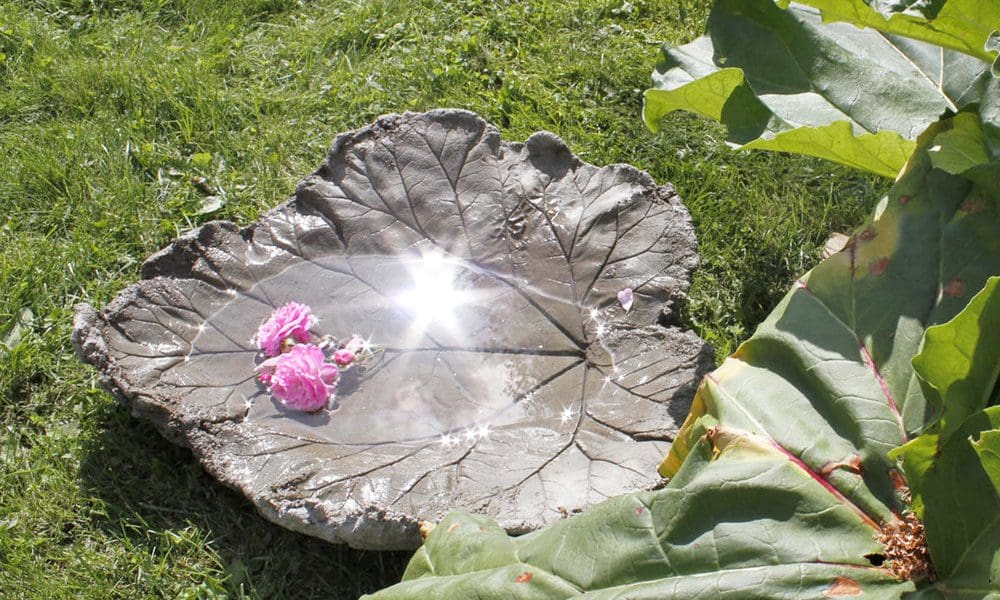 Finja tipsar: Gjut enkelt ett fågelbad med rabarberblad
