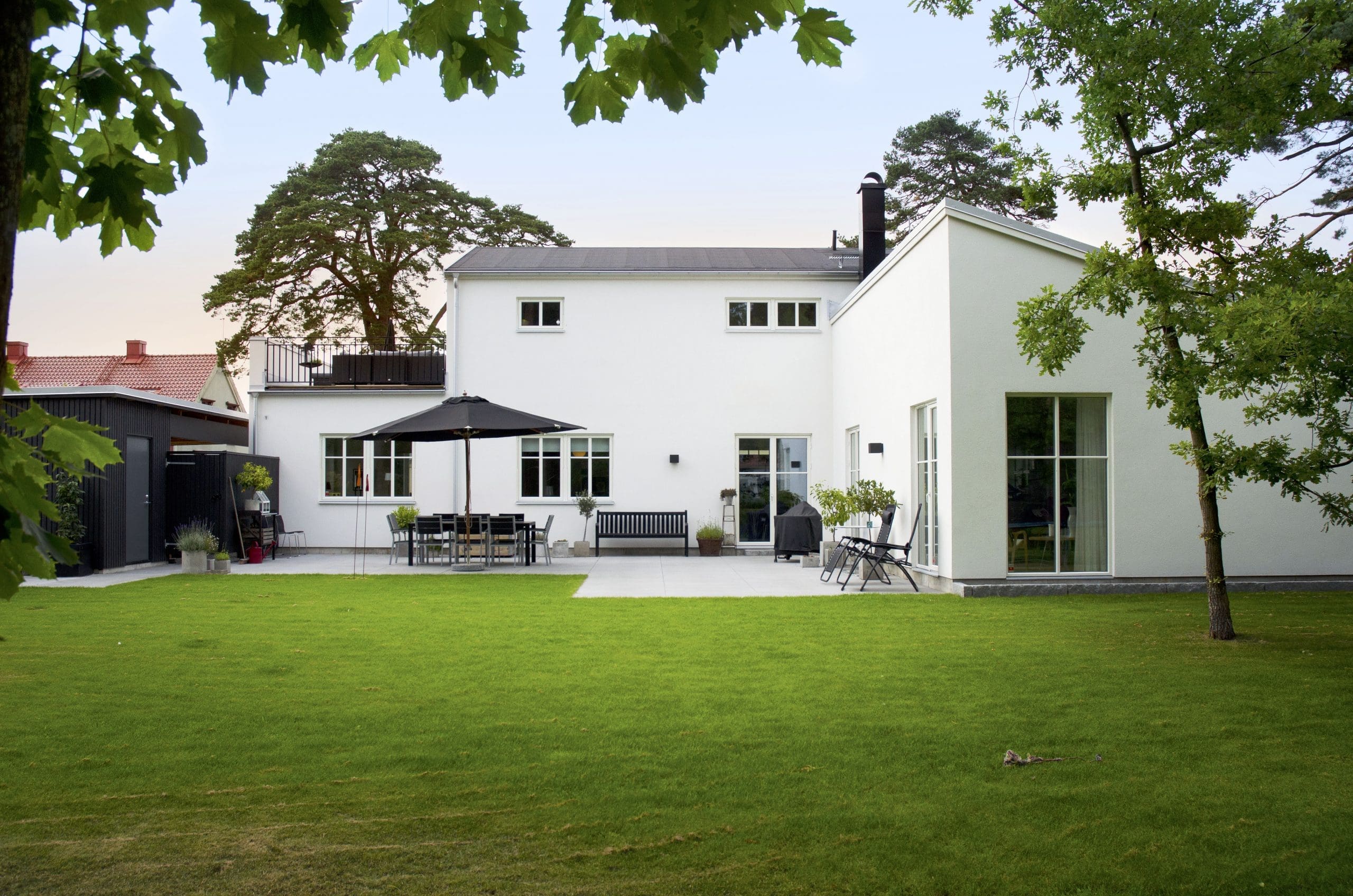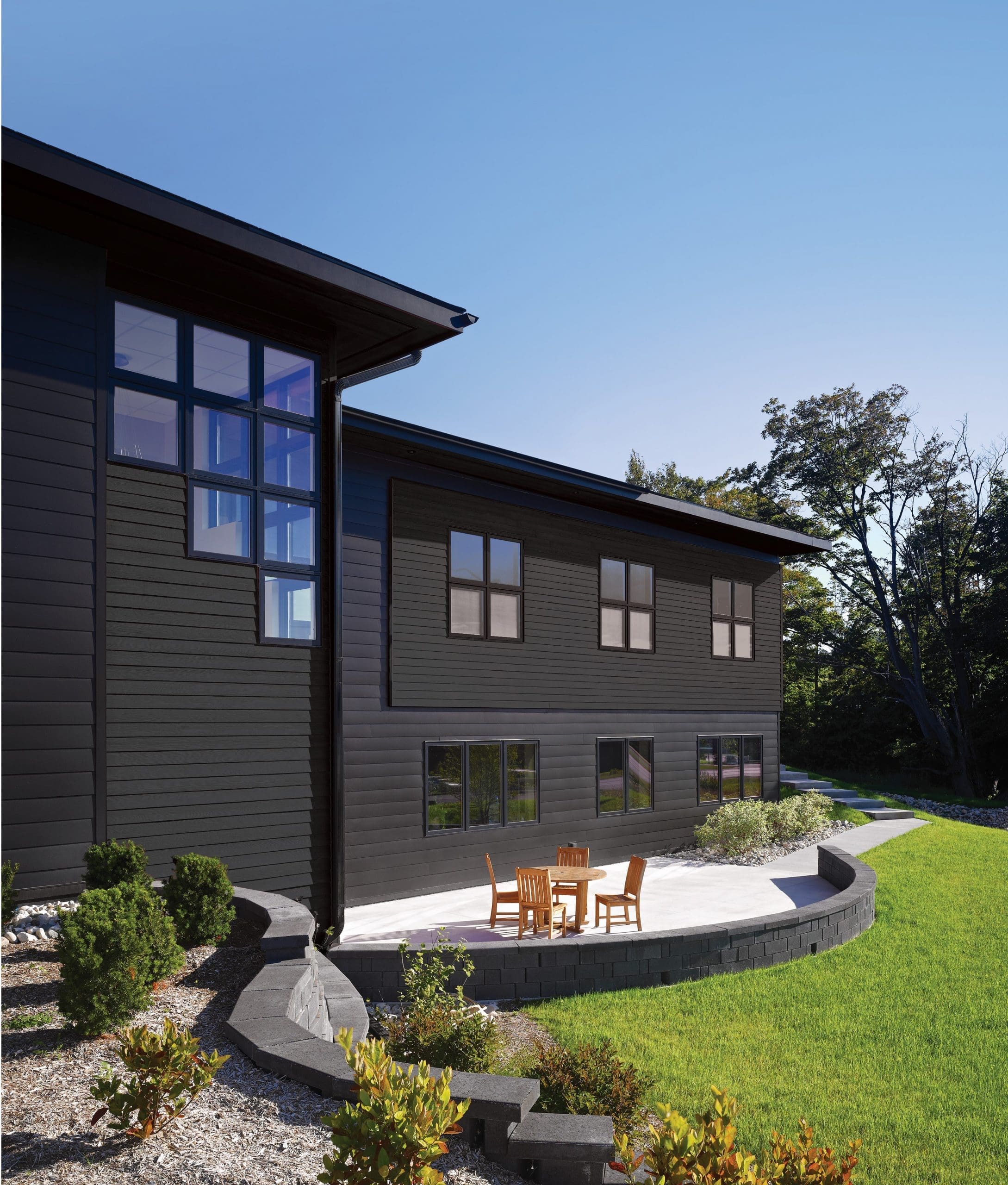 Ett material vi ser alltmer av är fiberbetong – lättmonterade, brandsäkra paneler som är resistenta mot både röta och svamp. Panelerna finns släta eller med trästruktur och levereras lackerade från fabrik. Fiberbetongen underhålles enkelt genom tvätt med såpa, håller i minst 50 år och är till 100 % återvinningsbar.