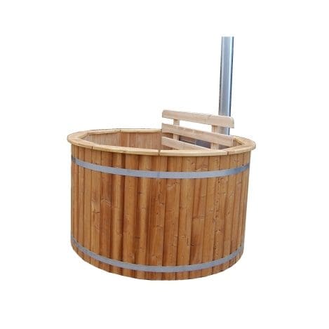 Badtunna i trä har en diameter på 1800 mm och den är avsedd för användning för upp till 6 personer. Badtunnan har tillverkats av kvalitativ gran- eller värmebehandlat trä och fästelement tillverkat av rostfritt stål. Badtunnan har finslipats med ekologisk ren tjära, vilket ger träet en vacker mörkbrun genomskinlig yta. Träytan är motståndskraftig och lätt att rengöra. I satsen ingår badtunna i trä, PVC-lock, trappa, sittplatser, kantbrädor, säkerhetsstängsel och en intern vedkamin på 30 kW.
