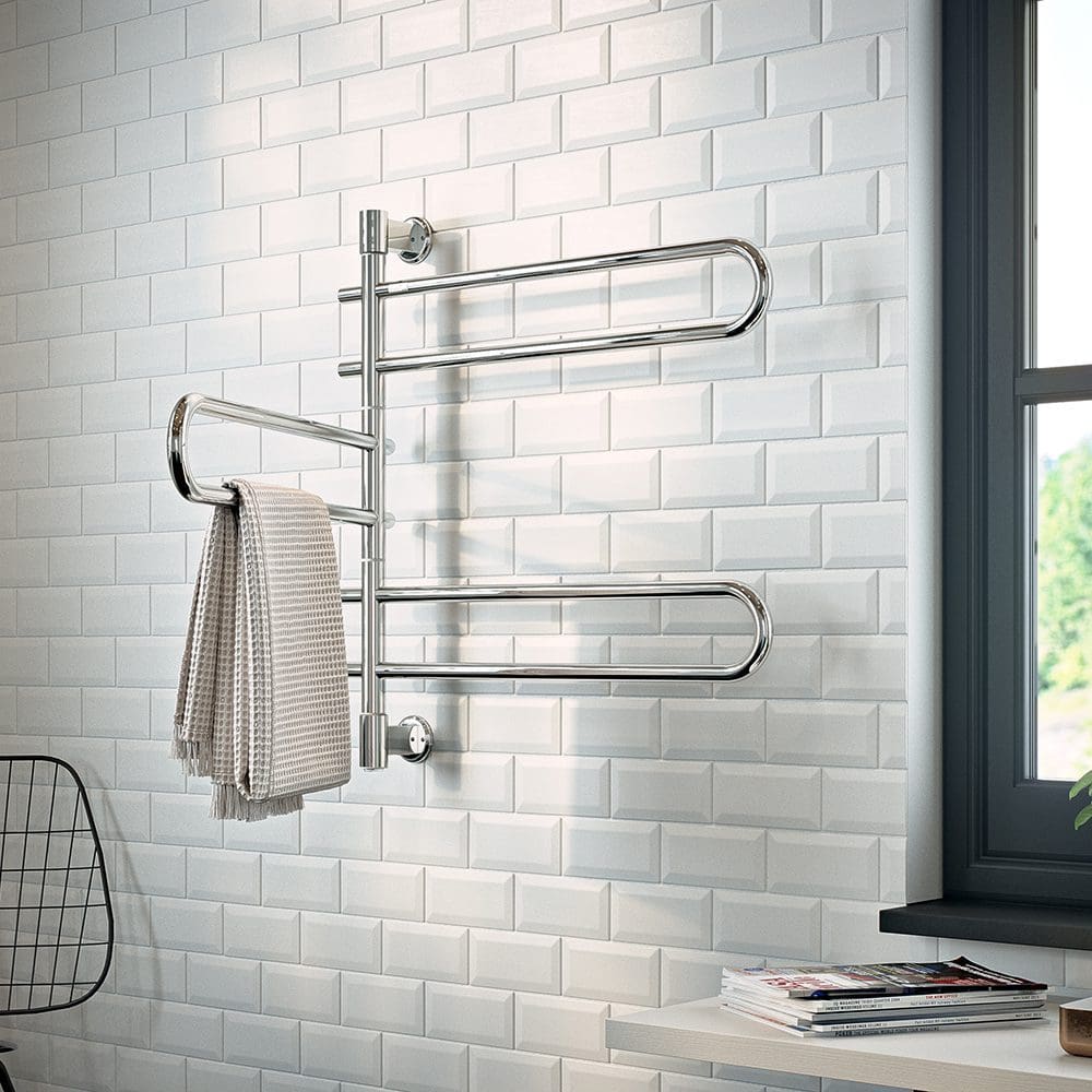 De mjukt rundade och svängbara bågarna skapar en elegant design och gör Vaxholm till en praktisk och flexibel handdukstork. Bågarna kan med full frihet vridas var för sig i 180 grader. Det är därmed enkelt att hänga på handdukar och konstruktionen gör även att flera handdukar kan hänga luftigt och torkas samtidigt. När handdukstorken inte används kan bågarna vikas undan och placeras utmed väggen om så önskas. Vaxholm finns i fyra olika höjder och två olika bredder så att du lätt kan hitta rätt, för just ditt behov och utrymme. Den värms upp av en värmekabel inne i handdukstorken och strömbrytaren sitter i botten av det stående röret. Välj mellan att ansluta med dold elanslutning genom fästet eller med stickkontakt till ett vägguttag.