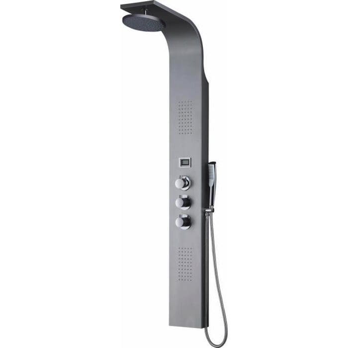 Duschpanel i rostfritt borstat stål med thermostatblandare, digital tempraturdisplay, handdusch och ryggmassage jets.