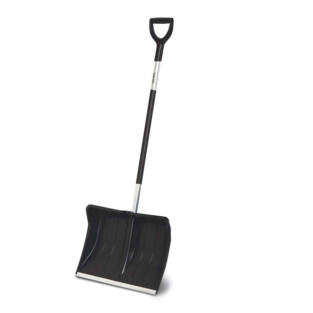Med greppvänligt handtag på aluminiumskaft. Blad i svart plast.