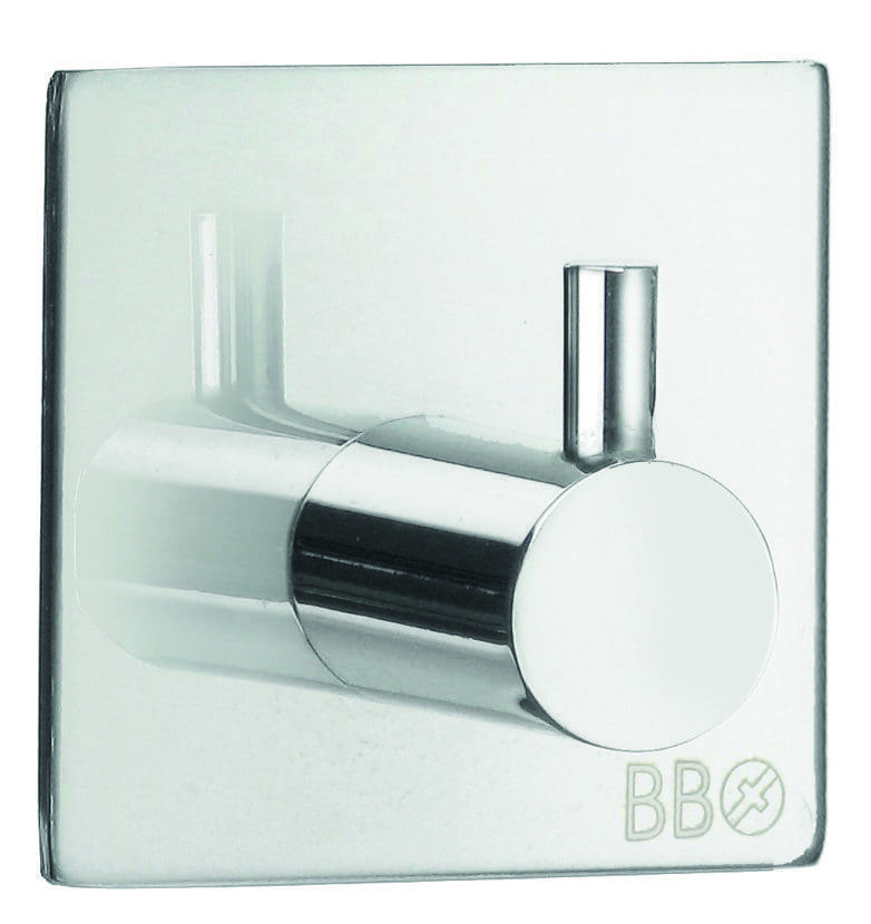 BESLAGSBODEN enkelkrok i kromat rostfritt stål. Självhäftande tejp. 45×45 mm.