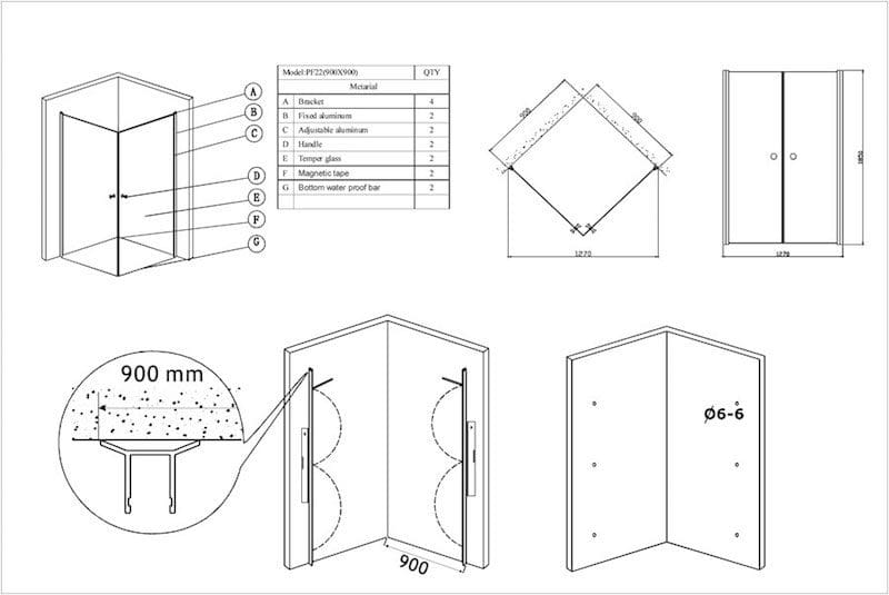 Alla våra duschhörnor är av högsta kvalitet. Här används material av högsta kvalitet o glas är 6mm härdat glas, och ramen är av borstad aluminium. Duschhörnorna passar utmärkt med våra duschpaneler. Utvändiga mått: