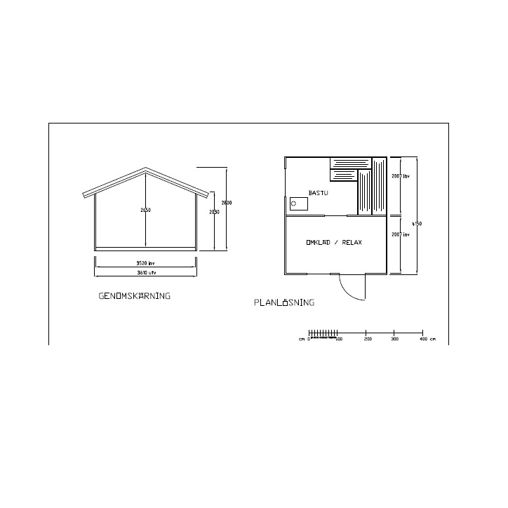 Tak: Profilhyvlad Gran 23×95, Takåsar 45×145, Underlagspapp med klisterkant.