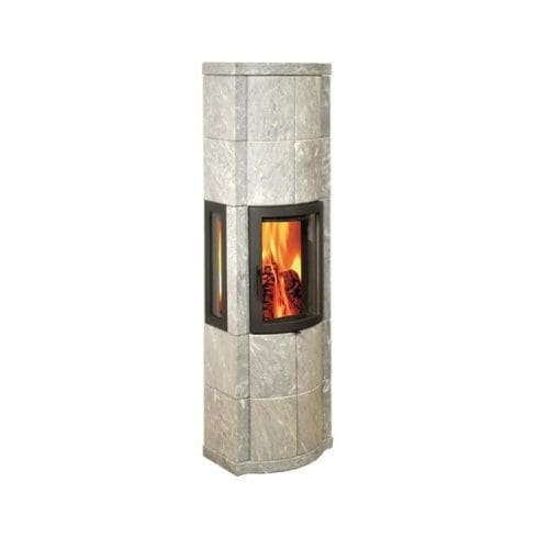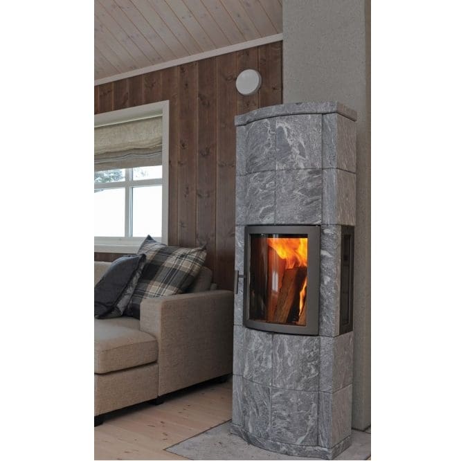 Den mjukt rundade formen på Merethe i samklang med råheten i den grå täljstenen är uppseendeväckande. Med dubbla sidoglas kommer man ännu närmare eldens skådespel, från 3 sidor i rummet. Det här är en eldstad för både kräsna som frusna människor. En eldstad för mysig komfortvärme och lång avsvalningstid.