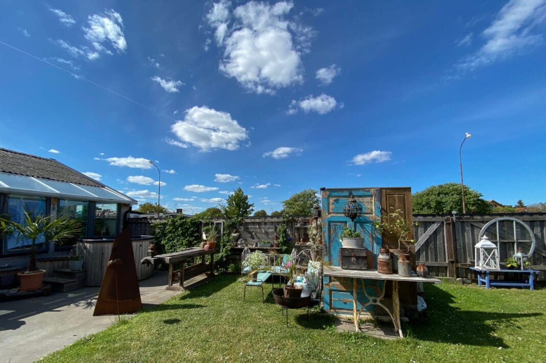 I vår trädgård har vi en stor skön sittplats för måltider utomhus, en frukosthörna, en relaxavdelning med badbalja, ett litet växthus med sittplats under vinrankorna och ett utekök som vi kallar Larssons Chill and Grill bredvid ett trädgårdsland som ger oss extra krydda till matlagningen.